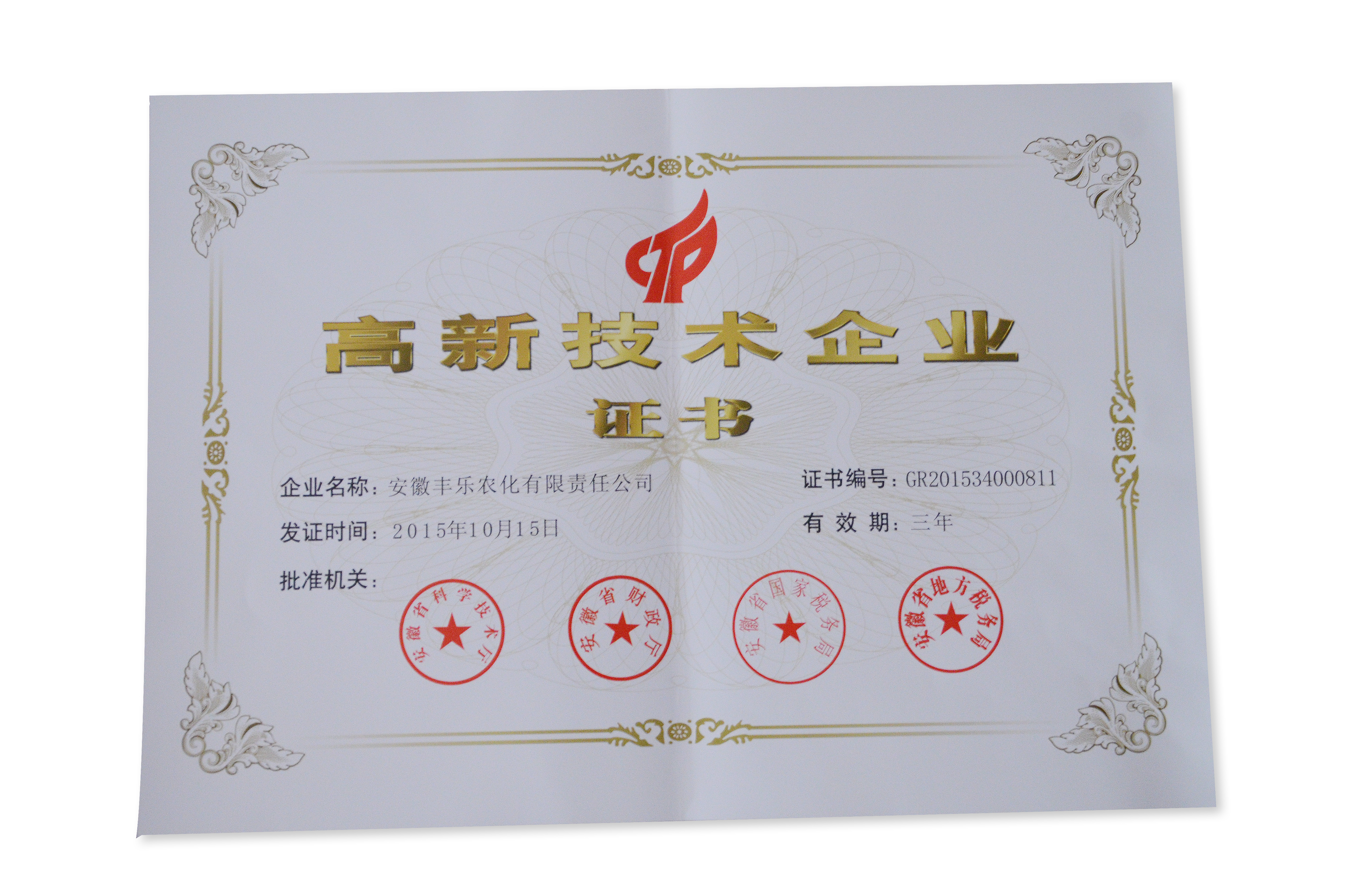 certificate for high-tech enterprise